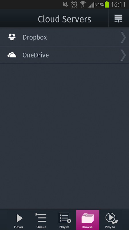 Sie können von diesem Produkt mit dem Android Terminal DLNA / UPnP-Server wie NAS im Netzwerk, die Musik (Dropbox, OneDrive) von Cloud-Speicher zu spielen, und.