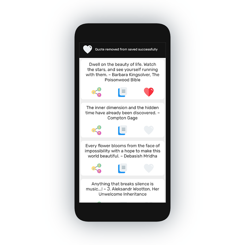 Die App enthält insgesamt mehr als 5.000 Zitate, die tiefgreifend sind und zum Nachdenken anregen. Genug, um Ihre tägliche Neugier auf Fragen zu Ihren alltäglichen Ereignissen zu befriedigen. Teilen Sie Ihre kostenlosen Lieblingszitate mit Ihren Freunden und Ihrer Familie, erhalten Sie jeden Tag eine Benachrichtigung für ein neues und durchsuchen Sie so viele, wie Sie möchten. Es ist wichtig, dass jeder ein erfolgreiches Leben führt.