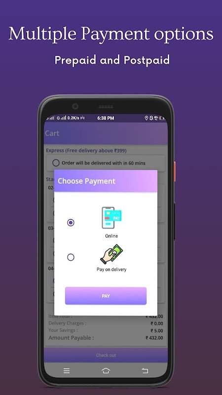 Kunden können per Nachnahme, UPI, PayTM, NetBanking, Debit-/Kreditkarte bezahlen.