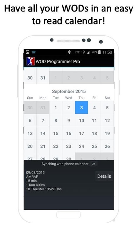 With WOD Programmer the athlete enters the length of their training cycle, equipment they have available, days they want to train on, exercise and scheme priorities, and duration of workouts and all of that information is built into a custom workout calendar. Perfect for any Crossfitter or fitness athlete.