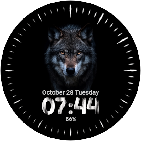 Wolf Face, ein Premium-Zifferblatt für Wear OS-Smartwatches von Prime Design