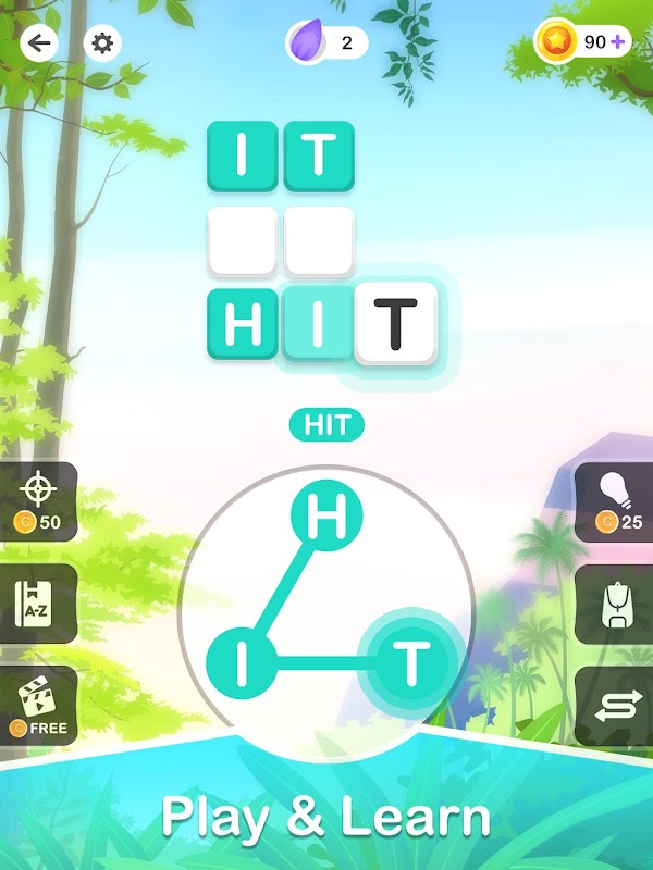 - Finde so viele Wörter wie möglich, um Level freizuschalten und zusätzliche Bonusmünzen zu erhalten.
