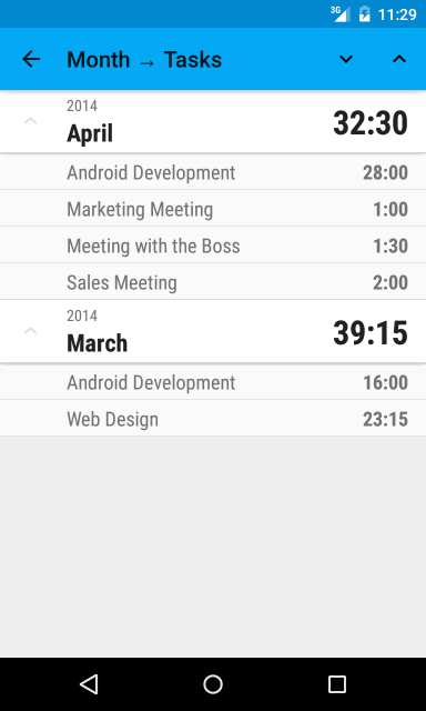 - Erstellen Sie verschiedene Berichte, z. B. "Aufgaben nach Tag / Woche / Monat" oder "Alle Tage / Wochen / Monat für eine bestimmte Aufgabe".