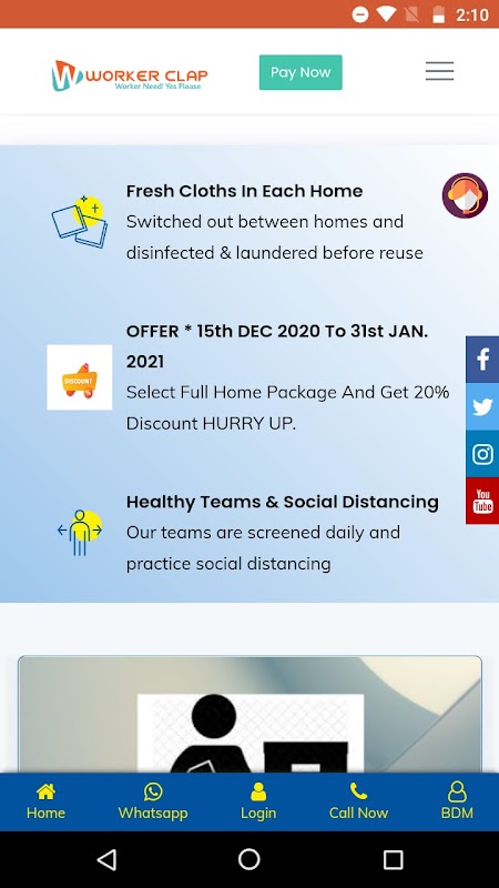 Worker Clap company was launched in November 2020. It is the largest local and social service provider in India. The Platform helps the custmer book reliable service like cook , house keeping, home tutors, cleaning services, baby sitter, gardner, etc. The company vision is to empower ( specially women ) the sevice professionals pan India to deliver services at home like never seen before. The company helps the with EPF, health insurance, professional training etc. Worker Clap company provides a platform that allows skilled, experienced and professional workers to connect with custmers looking for specific services. For enjoy worker clap sevices custmers should singup with us on our website and worker clap`s android and IOS application .All the professionals, though experienced and skilled, intensive training module before being allowed to list their services on the platform. Once on the platform our channel partners and bussiness devlopment manager identifies worker who are the closest to the custmer requirments and available at the requested time and date.