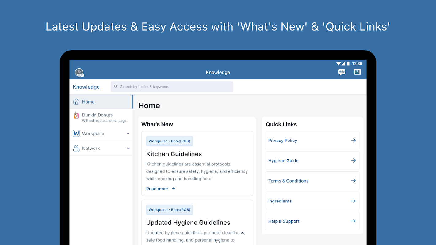 Knowledge App ermöglicht es Ihnen, Ihre Organisation gut informiert und geschult zu halten. Mit einfach zu erstellenden und bereitzustellenden Optionen können Sie eine Vielzahl von Schulungskursen für Ihre Mitarbeiter erstellen. An Bord Ihrer Mitarbeiter mit tollen Trainingsprogrammen. Halten Sie Ihre Mitarbeiter durch das Teilen Ihrer Neuigkeiten aus dem Unternehmen auf dem Laufenden. Geben Sie einfach Antworten auf häufig gestellte Fragen. Stellen Sie sicher, dass Ihre Organisation mit effizienten Mitarbeitern besetzt ist.