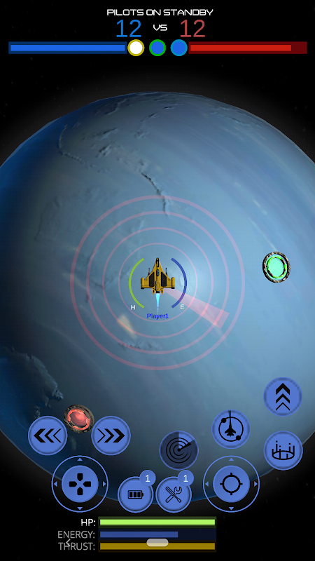 In multiplayer mode you fight against other players in 1v1, 2v2 or 3v3 PVP battle. Capture satellites. Destroy enemy towers. Use different kinds of weapons. Choose from different kinds of spacecrafts or mechs. You can win the battle by destroying the enemy base, or by destroying enemy spacecrafts untill all reserve pilots 12 of them are depleted. You may also win the battle by capturing satellites. You must maintain possession of those satellites for a period of time to win. The more satellites your team captured the the less time it takes to win the battle.