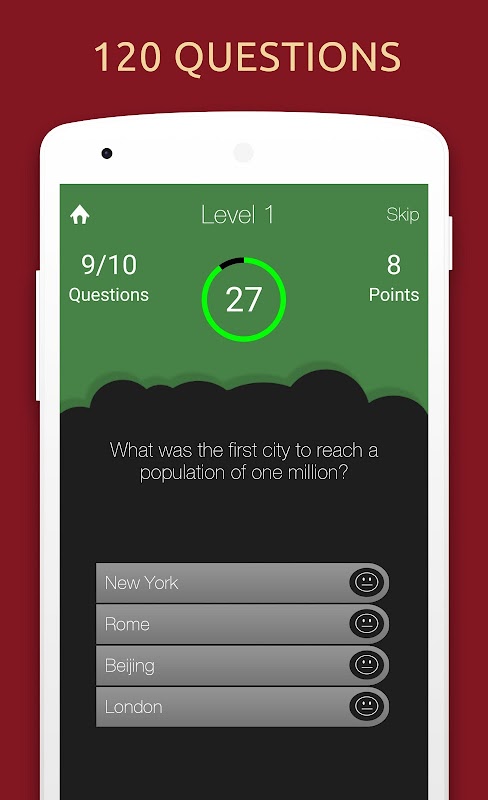 Wenn Sie sich für Geschichte interessieren oder historische Daten, Namen und Daten in Erinnerung behalten möchten, nutzen Sie unser World History Quiz Trivia Game! Es ist eine Sammlung von 120 Quizfragen und Fakten zur Weltgeschichte.