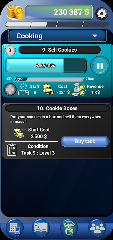 Reinvestieren Sie Gewinne, um neue Aufgaben und Geschäftsaktivitäten freizuschalten.