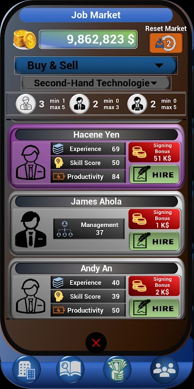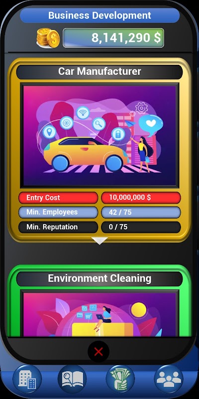 Starten Sie mit nur 5.000 $ Bargeld und bauen Sie ein weltweites Unternehmensimperium auf, das schließlich den Weltraum erobert!