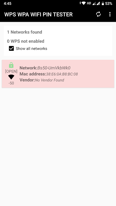 This app lets you check the vulnerability of your WiFi Router using WPS Pins by the method called pin bruteforcing.