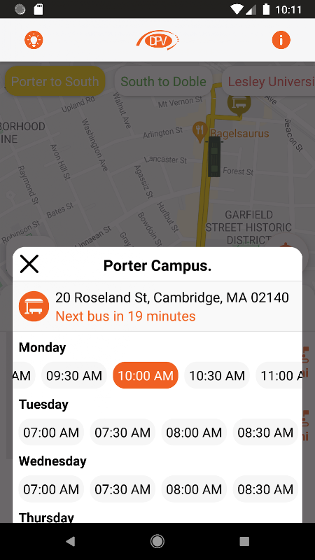 Diese mobile App ermöglicht eine nahtlose und reibungslose Busfahrt zur Verfolgung des Shuttles. Montag bis Freitag von 6:00 bis 20:00 Uhr, sodass unsere Fahrer bei schlechtem Wetter oder nachts sicher in den Gebäuden oder in Ihrem Fahrzeug bleiben können.