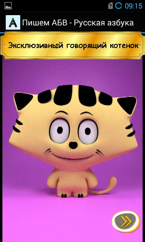 Kätzchen stellt uns die Verwendung von der Anwendung ab. Er stößt Laute und Wörter, die mit den Buchstaben erfolgreich geschrieben beginnen. Von Zeit zu Zeit das Kätzchen fördert Kindergeld verschiedene Wörter. Manchmal gibt es einen kurzen unterhaltsamen Animationseffekte.