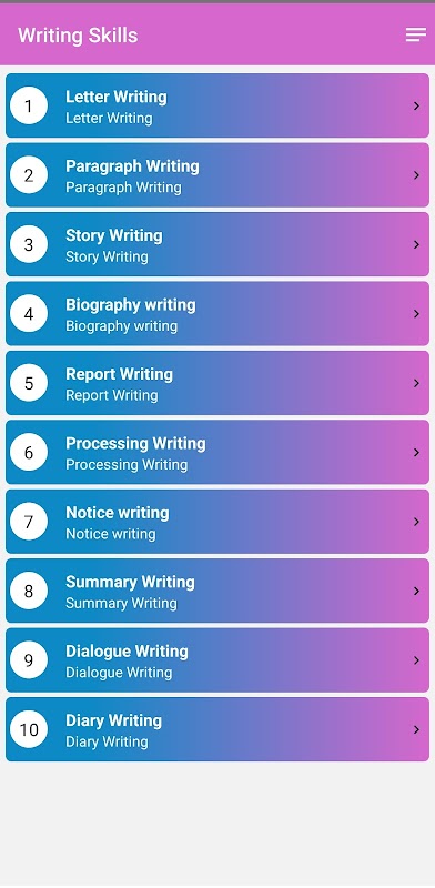 Schöpfen Sie Ihr Schreibpotenzial mit dem Writing Skills Guide aus, der ultimativen App, mit der Sie Ihre Schreibfähigkeiten verbessern und ein meisterhafter Wortschmied werden können. Egal, ob Sie ein professioneller Autor, ein Student oder jemand sind, der seine Kommunikationsfähigkeiten verbessern möchte, der Writing Skills Guide ist Ihr vertrauenswürdiger Begleiter auf dem Weg zu exzellentem Schreiben.