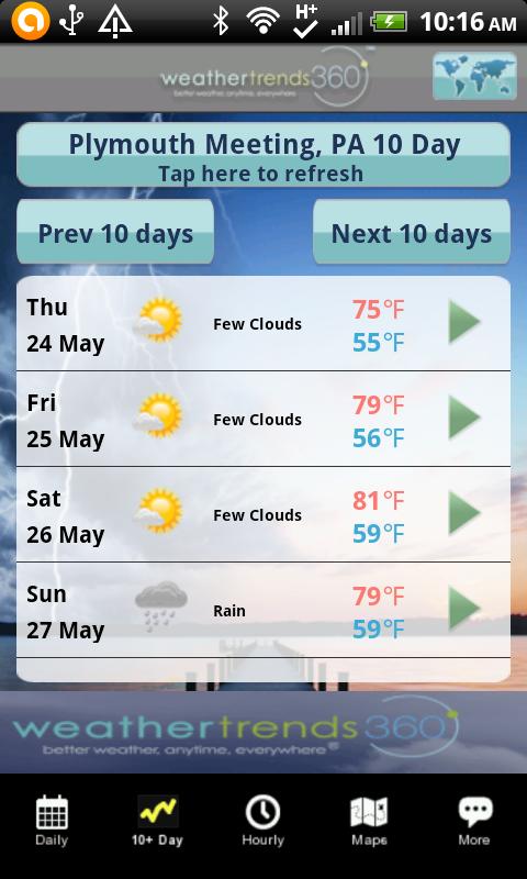 - Detaillierte tägliche Vorhersage aus 15 Tagen und stündliche Vorhersage 7 Tage
