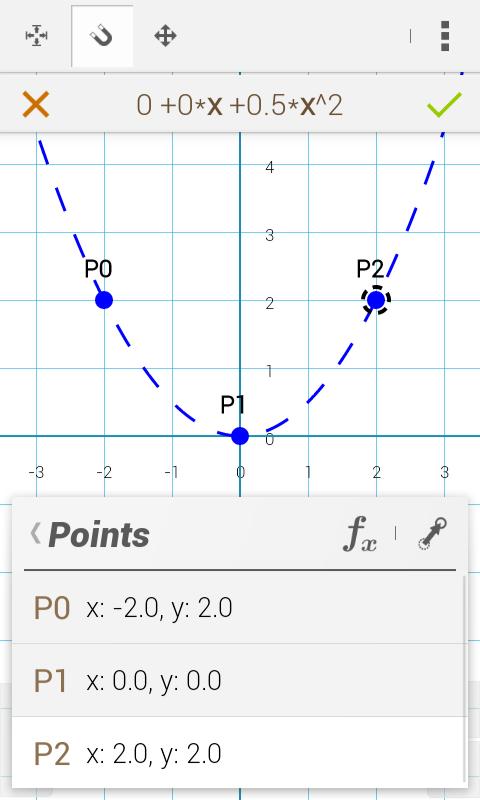 • • Nachdem der Benutzer geben ausgewählten Punkten auf dem Bildschirm Er erhält Funktionsgraphen Gleichung - Tippen Sie einfach auf ein paar Punkte auf dem Bildschirm und bewundern einen herrlichen Funktionsgraphen Gleichung!