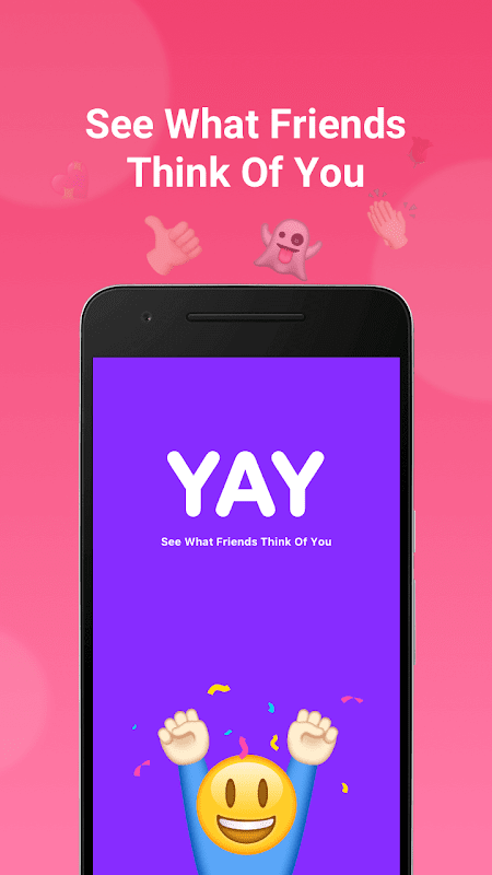 YAY is a TBH(to be honest) app which helps you poll for your friends anonymously. It is a self-confidence booster 👍 where friends tell you what they think about you. Take it easy 😂, all questions are positive and friendly 😘. Most positive app ever.