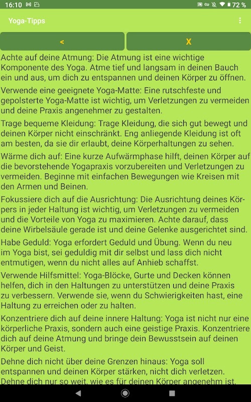 Der Yoga Guide ist speziell für Anfänger konzipiert, die eine Art Schnupperkurs Yoga absolvieren möchten. Yoga eignet sich zum Abnehmen, zum Entspannen und um innere Balance und Harmonie zu erlangen. In dieser Anfänger App sind die besten 10 Yoga Übungen enthalten. Eine davon ist eine Atemübung und die anderen neun sind Yoga Anfänger Übungen. Der Yoga Guide hat folgende Inhalte und Features: