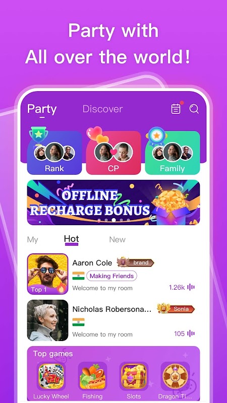 Yola ist eine kostenlose und unterhaltsame Voice-Chat-App! Hier können Sie Ihre Geschichten und Ideen mit anderen teilen und jederzeit und überall an einer Online-Party teilnehmen. Machen Sie Ihre Party zum Spaß mit lustigen Funktionen in der App!
