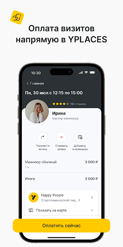 Über YPLACES können Sie ganz einfach die Uhrzeit oder den Tag Ihres Termins ändern. Es ist nicht nötig, die sozialen Netzwerke des Salons zu durchsuchen, den Administrator anzurufen, in den Chat zu schreiben oder eine Taube mit einem Brief zu schicken.