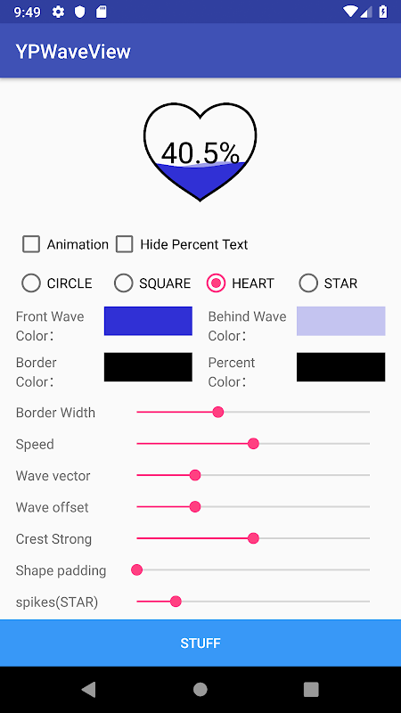 WaveView for android. A wave-like progressbar on Android which has four shapes, circle, square, heart and star.
