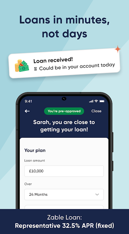 Zable-Darlehen: Repräsentativer effektiver Jahreszins von 32,5 % (fest). Angenommene Kreditaufnahme von 7.500 £ über 36 Monate bei einem repräsentativen effektiven Jahreszins von 32,5 %. Monatliche Kosten von 312,15 £. Gesamtrückzahlungsbetrag: 11.237,40 £. Zinssatz von 27,0 % p.a. (fest) und Gesamtgebühren von 440,00 £. Von 9,9 % auf 49,9 % effektiver Jahreszins. 1.000–25.000 £ über 1–5 Jahre verfügbar.