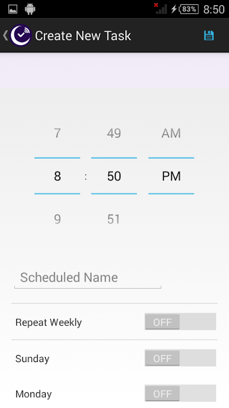 5. And click on the "save" icon on the top right side corner to save the schedule.