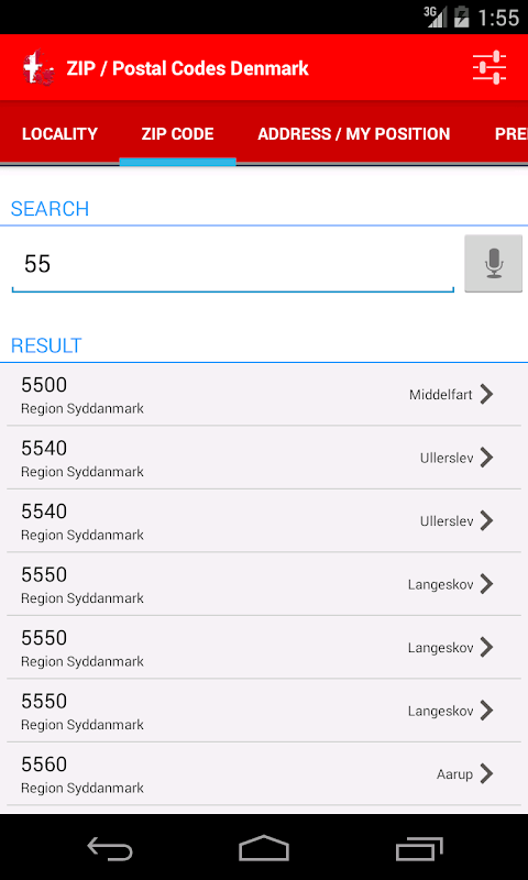 Anwendung nachschlagen Postleitzahl (PLZ) oder Orten in der Dänemark