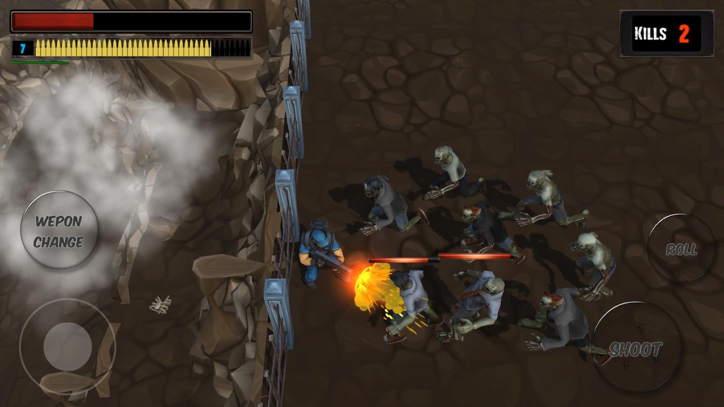Bewegen Sie Ihren Charakter mit einem Fingertipp, wechseln Sie Ihre Waffe, schießen oder rollen Sie. Machen Sie sich bereit für gruselige, gruselige Zombies an jeder Ecke, die bereit sind, Ihr Fleisch zu essen. Denken Sie einen Schritt voraus, um am Leben zu bleiben.