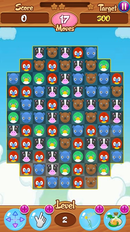 Zoo Match 3 is a free very addictive free game. This game is different from other match 3 games, like smash candy or cookie, ZOO Match offers you a new world of informal games, this game can help you pass the time with beautiful birds, cats and bears, as well as with cool boosters and crazy explosions!