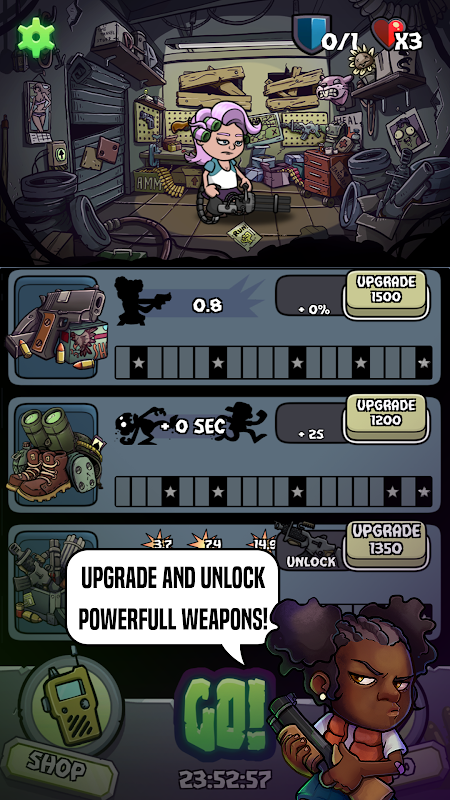 Your hero must defend himself even while you're not playing! Make sure you're stocked up on guns, ammo, and armor, because Zombies never sleep!