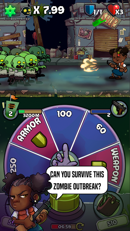 Test your luck! Outrun, gun down, and survive the zombie infection outbreak!