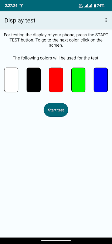 2. Carefully inspect the entire surface of the screen for the presence of different in color pixels after running the test.