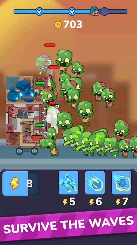 Each level is a new tactical challenge. Merge, upgrade, and fortify your tower to withstand increasingly fierce hordes. It’s not just about shooting — every decision matters: which block to use, which weapon to place, and how to hold the line for as long as possible.