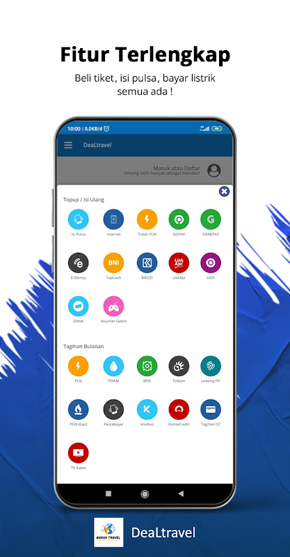 - Pay PPOB Bills (Monthly PLN, PLN Tokens, TELKOM Group, PGN, BPJS Health, PDAM, Leasing, Postpaid Cards, Game Vouchers, Cable TV)