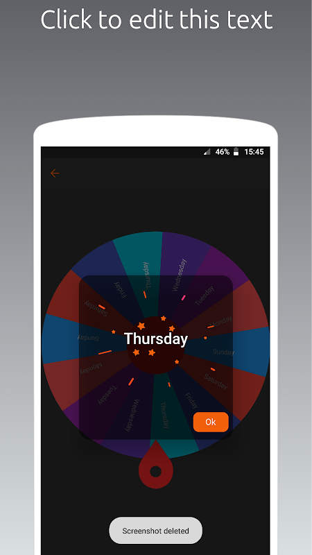 * Pick a day : Spin the wheel to pick a day of the week.