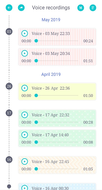 - Time stamp, photo, voice recording and text order can be arranged freely.