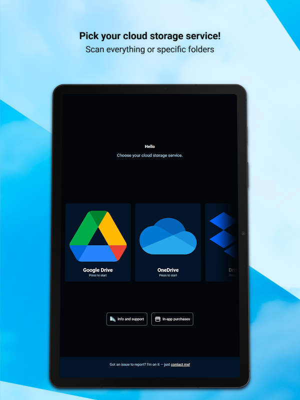 DeDuplicate scans your cloud storage, finds identical files, and lets you remove the extra copies to free up space.