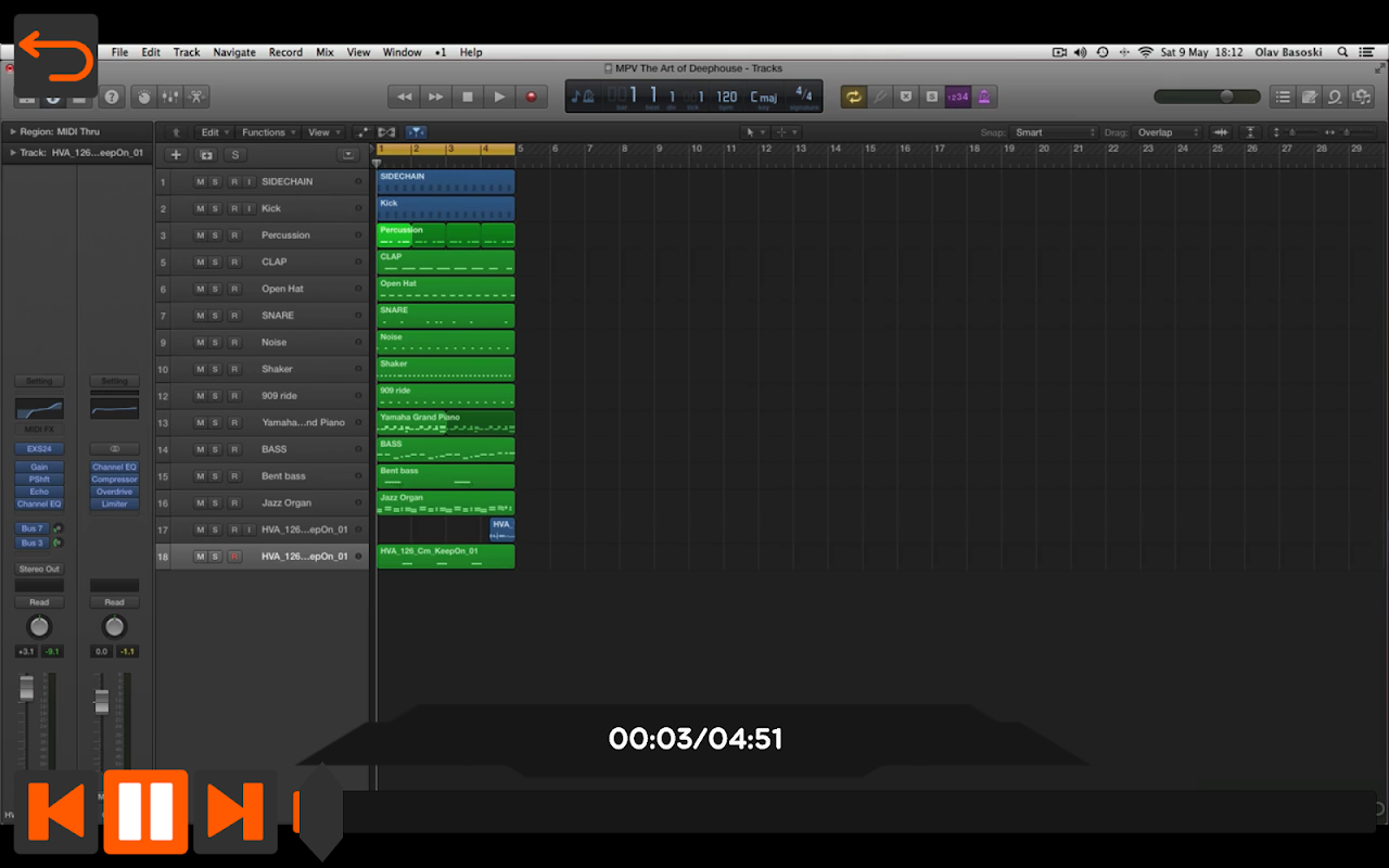 Deep House is all about fusion. The fusion of American soul and jazz infused with electronics. The fusion of complex chords with undulating rhythms. The fusion of ambient, synth atmospheres with traditional acoustic pianos and organs. This course fuses the beats, the sounds and the arrangements of Deep House with the incredible production tools of Logic creating an invaluable collection of tutorials that you just can’t get anywhere else.