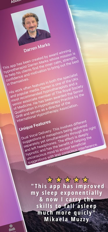 This powerful application created by one of the UKs leading hypnotherapists, combines hypnotic guided relaxation sessions with non verbal sounds designed to gently guide the mind to sleep. It also includes practical tips to help you get to sleep easily, a hypnosis session to help you rid your mind of negative thought patterns and video interviews about hypnosis to help you feel really comfortable with the process.