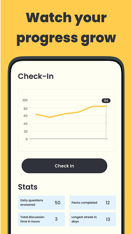 ✔️ Conversation packs: themed sets of question cards that rotate weekly
