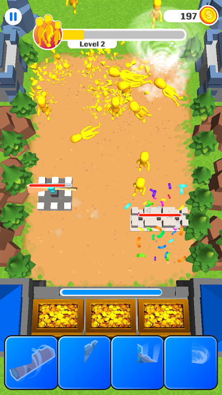 Use different weapons and tricks to scatter the enemy crowd across the battlefield!