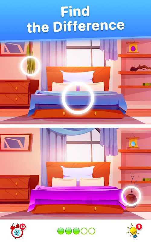 Begin your journey with hidden differences world! You will definitely fall in love with more than 7,000 beautiful pictures and photos where you have to find the differences and spot them. This free riddle game captures you from the first picture. The game has no timer, so you can relax and search for hidden differences at your own pace.