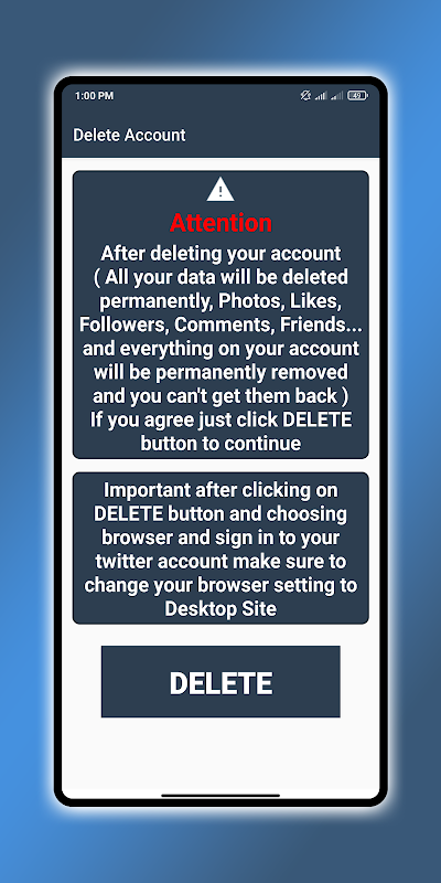 Delete Account App help you to delete instagram account permanently & tiktok..