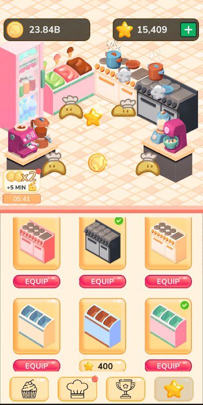 Spend stars on customizing your kitchen or boosting your income with time-warp buffs.