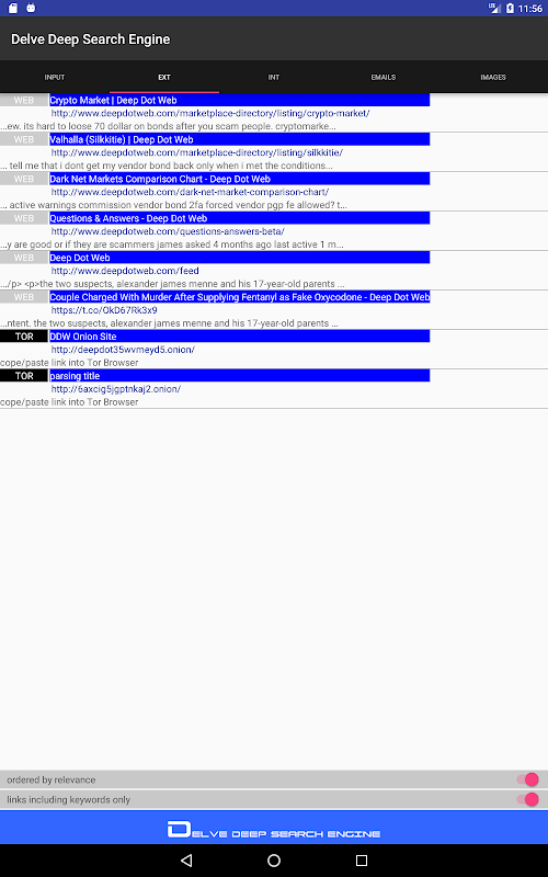 !!! PLEASE NOTE: Delve is not a TOR content viewer and TOR links will need to copy/paste into a TOR compatible browser !!!
