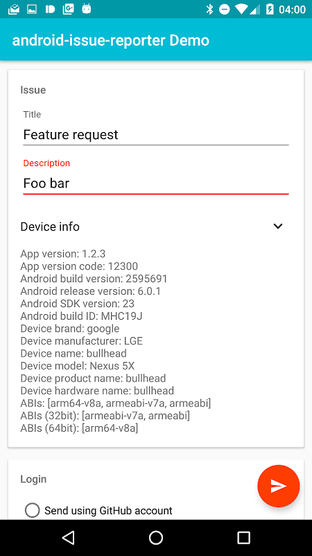 android-issue-reporter is a new material designed library to report issues from your app directly to GitHub, even without an account.