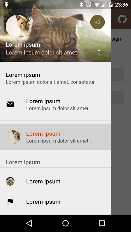 Android open source library can be found at GitHub: https://github.com/HeinrichReimer/material-drawer