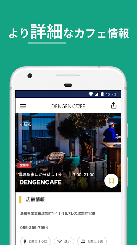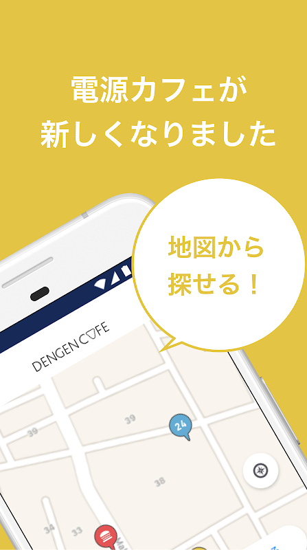 In addition, we call cafes and coffee shops with restaurants that can be recharged and WiFi, and restaurants as Dengen cafes. This app is a DENGENCAFE official app.