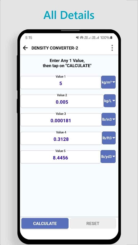 This app is more quick to those who want to do all Density related conversions.