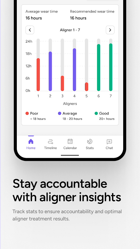 Log and monitor your daily aligner usage to achieve optimal results, with automated reminders to meet prescribed wear time targets.
